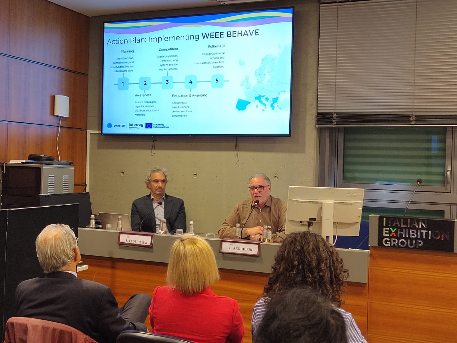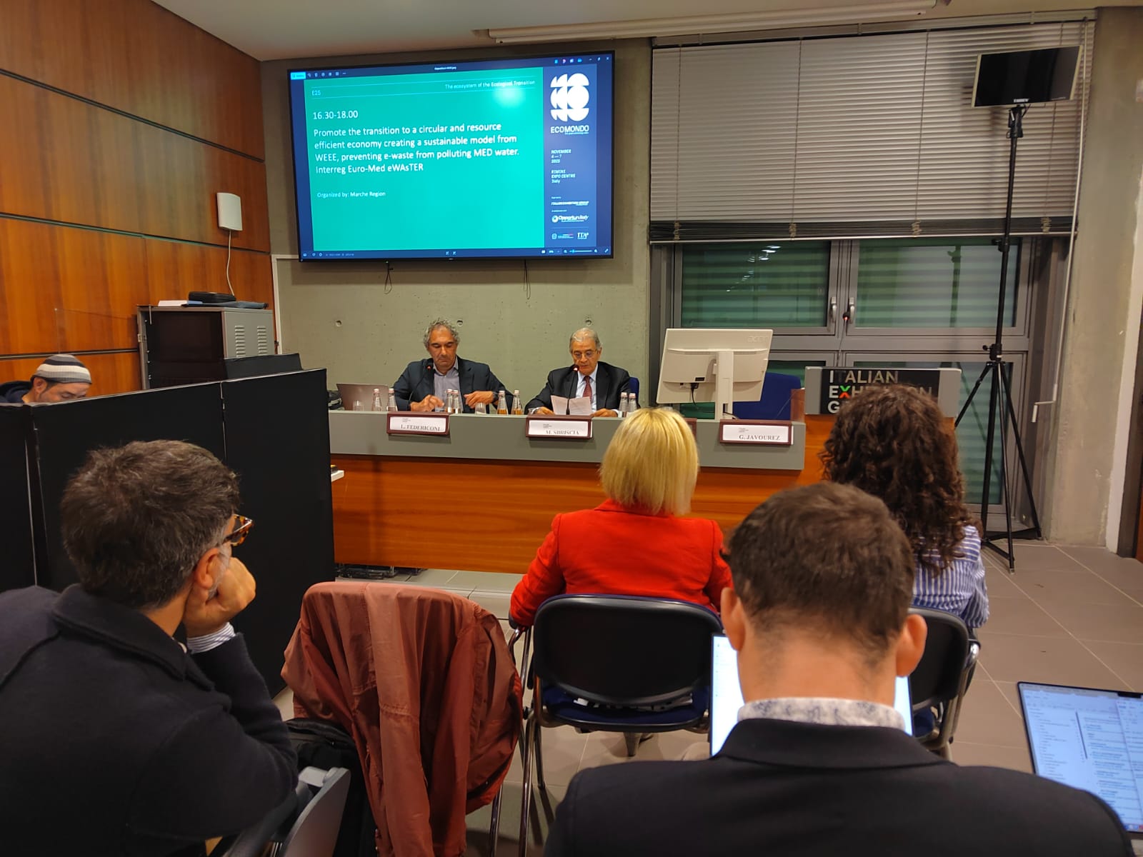 An amazing and emotional first day for participating partners of the project #EWAsTER at Ecomondo 2025. Thanks to the Marche Region, the project had an exhibition stand as well as a seminar was held at Tulipano Room Hal B6 dedicated to promote the transitions to a circular and recourse efficiency economy creating a sustainable model for WEEE, prevention e-waste from polluting Mediterranean waters. Chaired by the Lorenzo Federiconi and Massimo Sbriscia on behalf of Marche Region, our fantastic host partner, the seminar brought together stakeholders, policy makers, opinion leaders, local authorities, research bodies and institutions, etc.