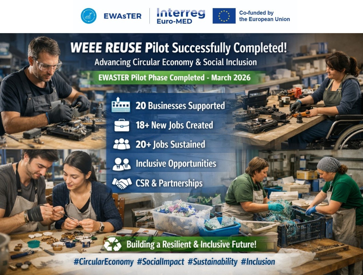 As announced, the end of March 2026 marks the official completion of the EWASTER pilot testing phase. We are proud to highlight the successful implementation of the WEEE REUSE pilot action, a transnational initiative focused on advancing circular economy practices through the reuse of plastic and e-waste, while promoting social inclusion and job creation.